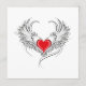 Artistically painted red heart with angel wings grey, decorated with black smooth contour.