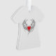 Artistically painted red heart with angel wings grey, decorated with black smooth contour.