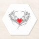Artistically painted red heart with angel wings grey, decorated with black smooth contour.