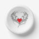 Artistically painted red heart with angel wings grey, decorated with black smooth contour.