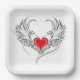 Artistically painted red heart with angel wings grey, decorated with black smooth contour.