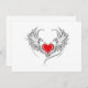 Artistically painted red heart with angel wings grey, decorated with black smooth contour.