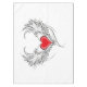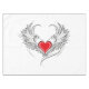 Artistically painted red heart with angel wings grey, decorated with black smooth contour.