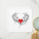 Artistically painted red heart with angel wings grey, decorated with black smooth contour.