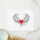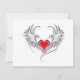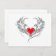 Artistically painted red heart with angel wings grey, decorated with black smooth contour.