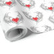 Artistically painted red heart with angel wings grey, decorated with black smooth contour.