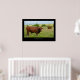 A poster print that shows a proud red Angus bull and cattle. This print is isolated on white and would be perfect for anyone who owns red Angus cattle.