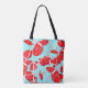 Stylish And Elegant Red And White Anthurium Flower Pattern Tote Bag to add to your shopping accessories collection. A cool gift / present idea for all who love positive vibes, organic theme, busy prints, custom design unique items, colour therapy, nature, plants, floral theme etc. Change the background colour to suit your style and taste. Each side is different.