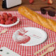 Serve your guests with playful red apple plates. The whimsical apple motifs and coquette-inspired patterns create a sweet and charming table setting for your shower.