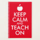 Create your own customisable planner for a teacher. Custom "Keep Calm and Carry On" ... teach on. You can change the bright red background colour. You can add a personalised text message to the back.