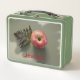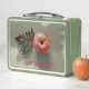 Personalise this beautiful classic green metal lunch box with a red apple. It features a photographic image of an Apple front and back and customisable "A" is for Apple text.