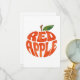 The design features the words 'Red Apple' creatively arranged in the shape of an apple with a green leaf on top. The typography is bold and colourful, giving a cheerful and vibrant impression.