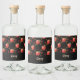 Red apples and leaves on black liquor bottle label