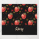Add your name on this red apple and leaves pattern on black background design.