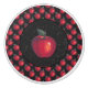 Linda Baysinger Peck's painting of red ripe apples, on black chalkboard background, with border of smaller apples.