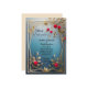 This wedding card features a sophisticated and elegant design with a golden frame intricately intertwined with delicate branches and leaves. Red apples hang from the branches, adding a touch of vibrant colour to the composition. The background transitions smoothly from light to dark blue, creating a serene and dreamy atmosphere. The art style is reminiscent of Art Nouveau, chraacterised by its organic lines and natural forms, lending a timeless and romantic feel to the card. Personalise the text regarding the names and details of the wedding. You can download the card to your mobile device or computer. I designed the card with the help of generative ai.