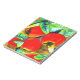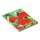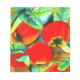 with original art design from watercolour painting of juicy, red apples hanging on trees at the orchard. Bright red and yellow colourful fruit design juxtaposed against the lime green coloured leaves.