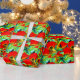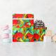 with original art design from watercolour painting of juicy, red apples hanging on trees at the orchard. Bright red and yellow colourful fruit design juxtaposed against the lime green coloured leaves.