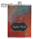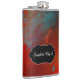 Red, Aqua & Gold Grunge Abstract Art, Personalised Hip Flask