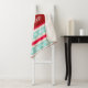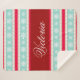Festive sherpa blanket with aqua/red christmas pattern and custom text area in the middle.
