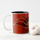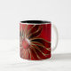 An abstract work in fiery red and gold. A clear red gem is surrounded by gold-edged flames accented with sparkling rubies and yellow starbursts. The swirling, spiralling fractals in the background appear in deeper colours inside the gold filigree of the flame motif.