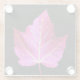 Glass beverage coaster for your drinks and that features the photographic image of a red, autumn coloured Maple leaf contrasted against a black background. A colourful, botanical image!