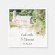 The charming Red Barn and Silo Country Farm Wedding Paper Napkins can be personalised with the names of the bride and groom and date to be used at your casual yet classy engagement barn party, bridal shower or marriage reception. These quaint custom ranch style disposable nuptial napkins feature a picturesque digitally watercolor painted landscape photograph of a red barn and silo in a green pasture with tall trees in the Midwestern countryside of Iowa.