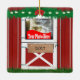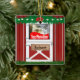 Red barn door custom Christmas ornament with photo window on both sides. Upload your photos to replace the sample photo. There is also a barn door sign on both sides with text that can be personalised.
