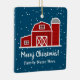Red barn farm house in snow custom Christmas Ceramic Ornament