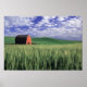 Red barn in wheat & barley field in Whitman Poster