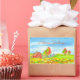 A cheerful sticker for the autumn season featuring a red barn with a pumpkin patch ready for fall decorating and the leaves are changing colours on the trees, drawn in ink with watercolor. Fun way to share autumn greetings!