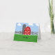 A country living design on this thank you card featuring a red rustic barn with a silo behind it. Green grass and a flowers blooming on this sunny day in the country.