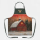 Red Barn w Star n Winter Trees Farmhouse Monogram Apron