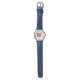 This watch is exactly what I expected. It is easy to set the time and the fit is perfect! The blue band is great for a boy and the sports theme was a hit!