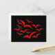This postcard features a collection of simple images of bats flying together in a cloud pattern. The bats are red and the background is black. Kids are sure to love this cute design.