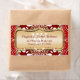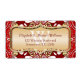 Bali, Indonestian Batik inspired alternative design arts large sticker wedding address labels in earthy reds, gold and white : on elegant stylish light gold emblem with monogram, customisable text space for address, personalised greeting or whatever else you wish to express