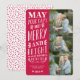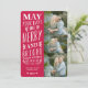 This multi-photo design features a holly berry red colour scheme with a whimsy typography style. Various fonts are used in a vertical stacking technique to allow space for you to include 3 photographs.