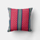 Red & Beige Polka Dots Navy Blue Stripes Pattern Cushion