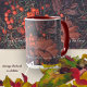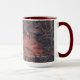 Mug featuring a photo of an autumn still life in warm natural colours: fallen leaves and rowan berry on the ground. Rustic natural pattern for nature lovers, great addition to the country, rustic and dark cottage style home decor.