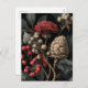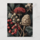 Red Berries and Exotic Seed Pods on Black Holiday Postcard