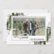 Unique, classic, trendy, pretty and decorative Holiday card. Cute Happy Holidays greeting text and room to customise or personalise with a photo, family name (or individual names) and message of your choice. Framed by Burgundy wine red berries and dark green foliage wreath bouquets on a classy crisp white background.
