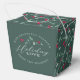 Red and shades of green holly festive favour treat boxes. Reads With heartfelt thanks & holiday love from then personalised with your own family name or company for a festive addition to Christmas tables or holiday party buffets. Other matching items are available and can be created on request. © Original design by www.mylittleeden.com on Zazzle.