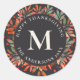 Our modern and elegant Red Berries & Green Leaves Monogram Dark Classic Round Sticker features a watercolor illustration of colourful fall leaves in shades of yellow, orange, blush, sage and teal green accented by ripe red rowan berries., all on a deep dark charcoal grey background. All text in the sticker can be updated to create a unique mailing or gift wrapping accessory.
