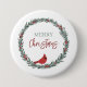 Red Berries Wreath and Red Cardinal Christmas 7.5 Cm Round Badge