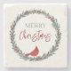 Red Berries Wreath and Red Cardinal Christmas Stone Coaster