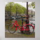 The full colour version of my red bike picture. The cycle is on a bridge over the Singel Canal in Amsterdam.