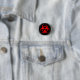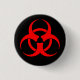 Red and black bioahzard symbol button pin.