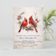 This striking illustration features two vibrant red cardinals perched on delicate winter branches, surrounded by soft white pine needles and clusters of bright red berries. Set against a deep, dramatic background, the cardinals’ rich crimson feathers and expressive poses create a bold yet elegant focal point. The painterly, watercolor style blends realism with a touch of whimsy, evoking warmth, joy, and celebration even in a winter-inspired scene. Perfect for a birthday invitation, this design feels festive and cheerful while remaining timeless and refined. The vivid reds symbolize happiness and good fortune, making it ideal for honoring a special day with style and personality. Personalize with your own information.