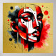Abstract face in red, black and white, on a gold background enhances any wall whether in the home or office.