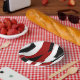 Red black and white abstract paper plate